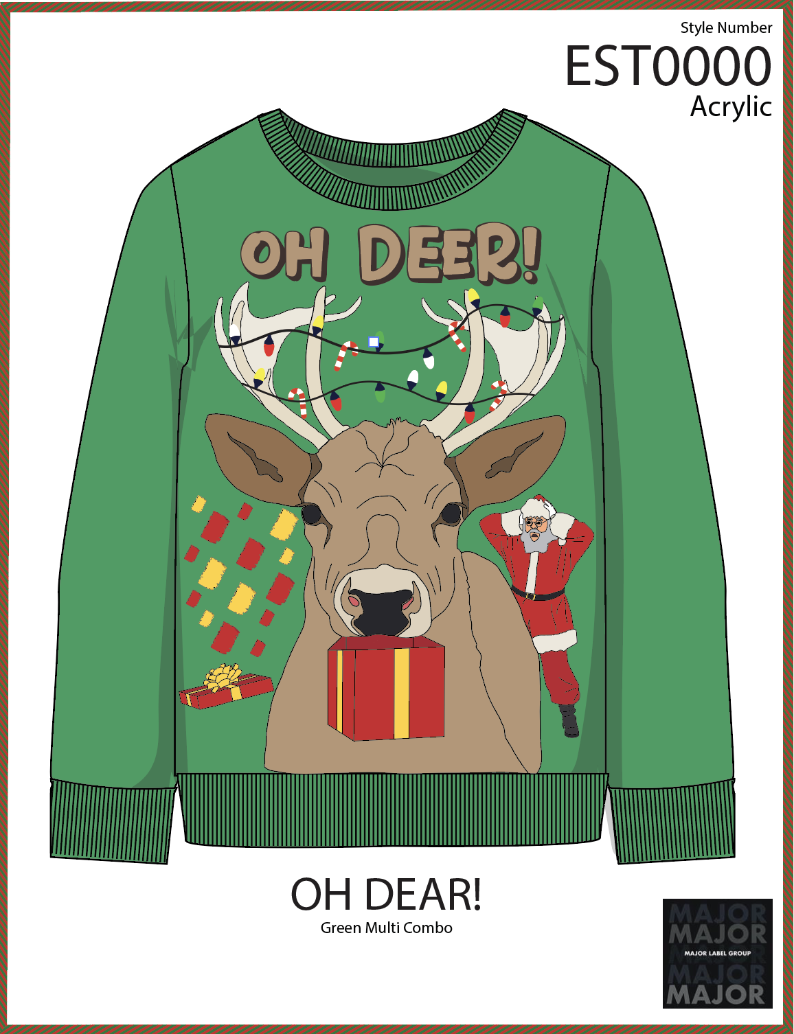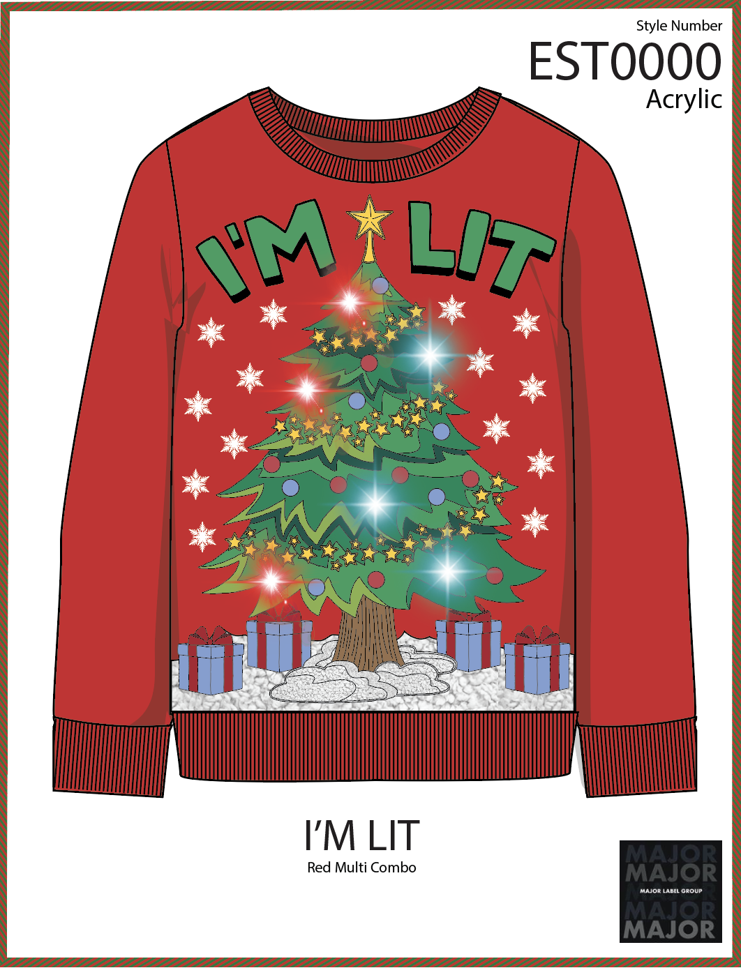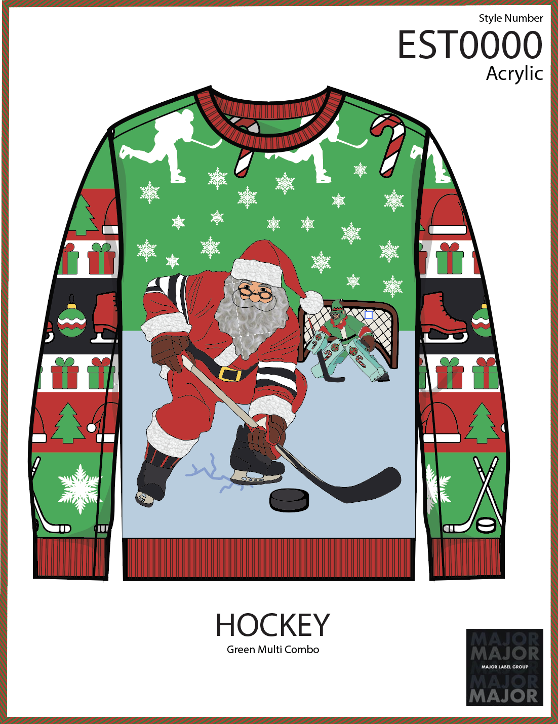 During my Summer 2025 internship at Major Label Group, I was responsible for conceptualizing, designing, and preparing holiday-themed sweaters and sweatshirts for the upcoming retail season. These designs were developed for mass-market distribution and presented to major national retailers, including Target and Walmart.