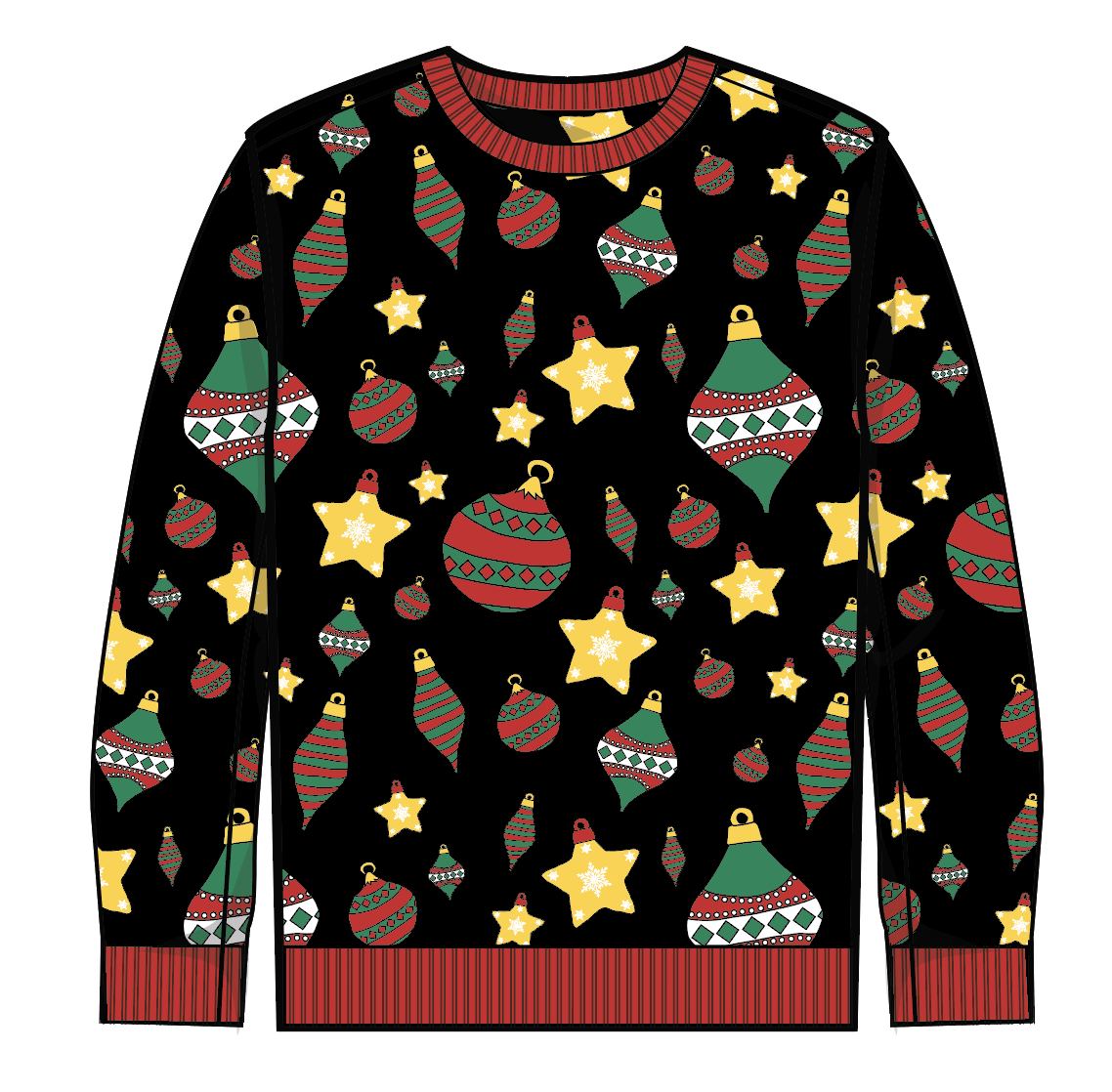 Exemplifies my capability to create patterns and repeated designs for a classic sweater suitable for all demographics to wear. The variation of the ornaments and patterns is rich, wth the diamonds and star-shaped ornaments spaced out well and in an organized manner.